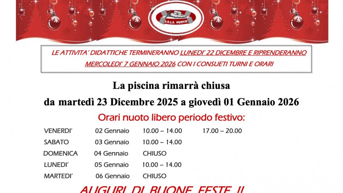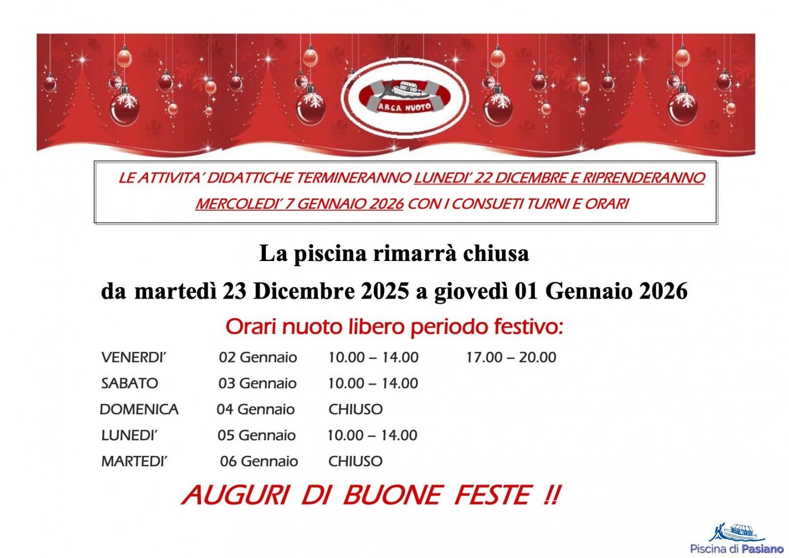 Sospensione attività didattiche. Programma nuoto libero festività Natalizie 2025 Articolo del 22/12/2025 ‹ › × × Commenti Abilita JavaScript per visualizzare i commenti tramite Disqus.