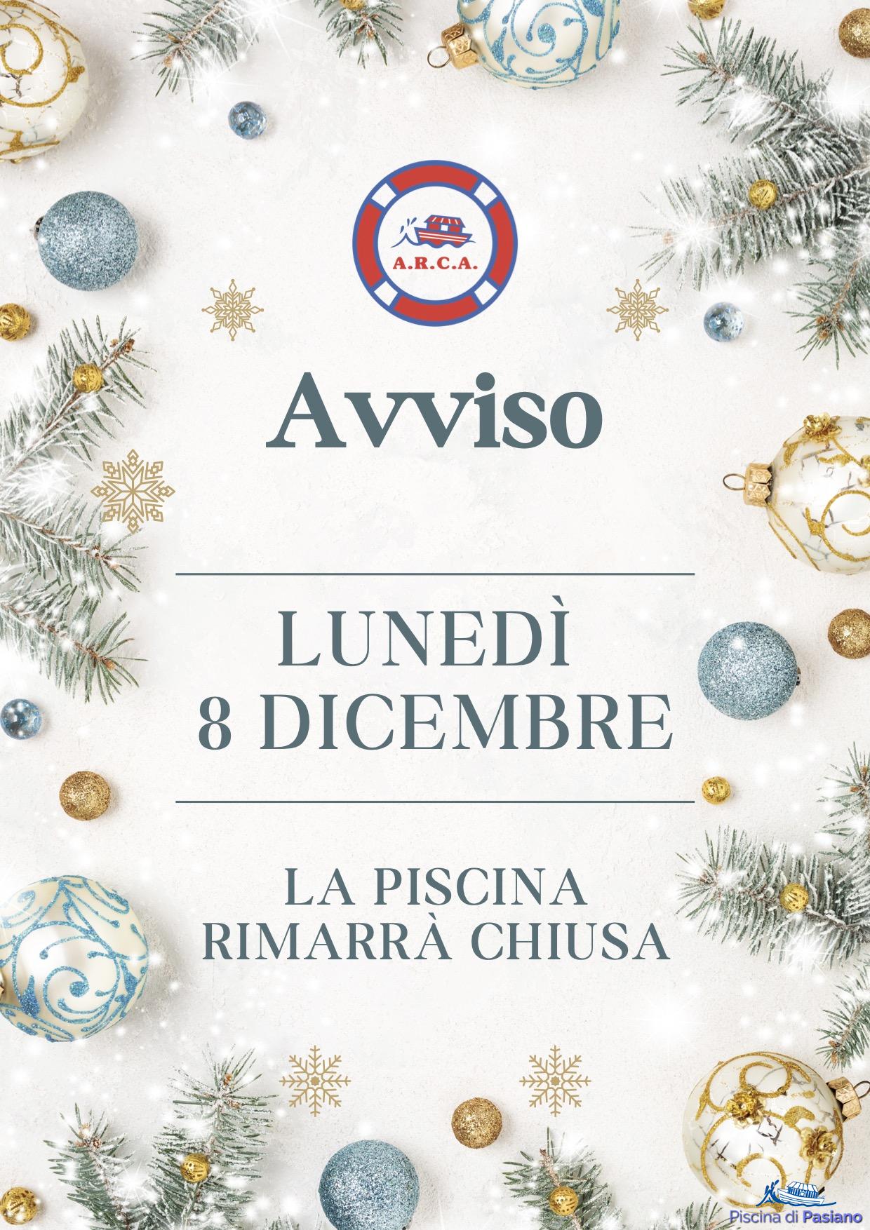 8 dicembre Articolo del 04/12/2025 ‹ › × × Lunedì 8 dicembre la piscina rimarrà chiusa. Commenti Abilita JavaScript per visualizzare i commenti tramite Disqus.